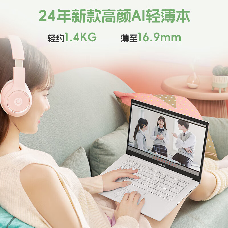 华硕(ASUS)a豆14 高颜值AI轻薄笔记本电脑商务办公学生游戏 【13代i5 16G 512G】香草罗勒 护眼屏